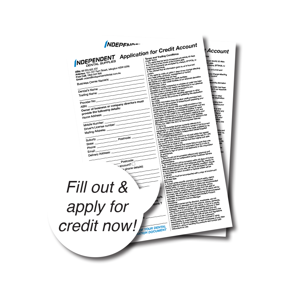 Download and fill out this .pdf form to set up your credit account with Independent Dental Supplies